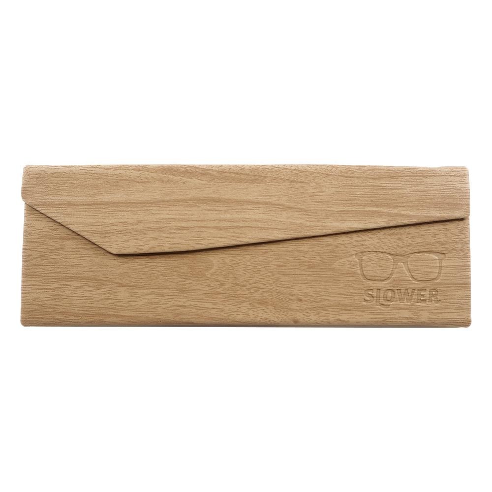 メガネやサングラスをかけているときはコンパクトに折りたたんで収納できるメガネケースです。 製造国:中国 素材・材質:ポリウレタン、メタル、マグネット 商品サイズ:組立時:162×58×55mm、折りたたみ時:162×58×12mm 重量:80g 仕様:折りたたみ可能 ※サプライヤー直送品 ご注文後3~4営業日後の出荷となります【商品名】SLOWER(スロウワー) EYEGLASS CASE WOOD メガネケース SLW501 ライトブラウン