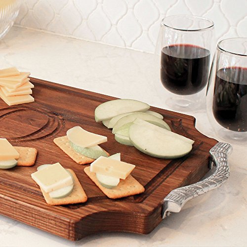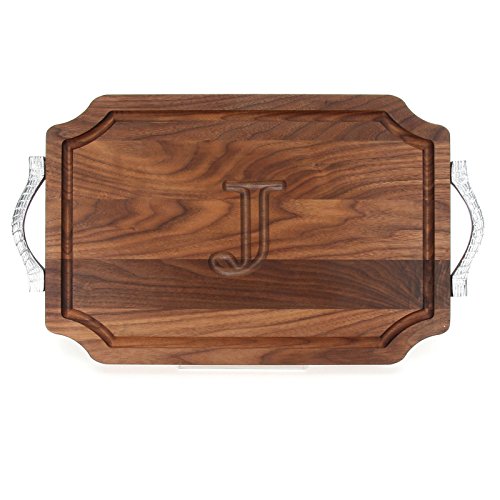BigWood Boards W310-RP-J Cutting Board with Rope Handle in Cast Aluminum with Scalloped Corners, 12-Inch by 18-Inch by 1-Inch, Monogrammed "J", Walnut