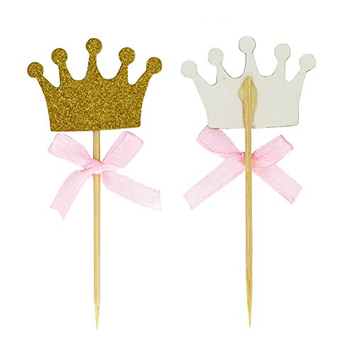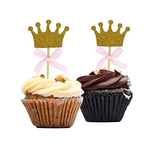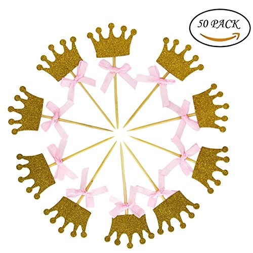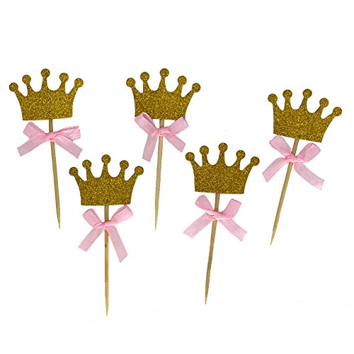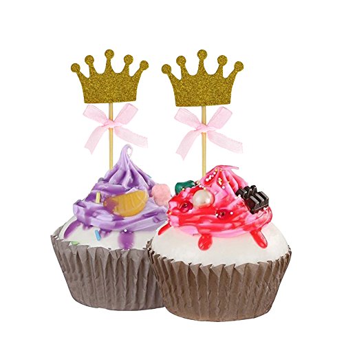 Quantity: comes with 50 pieces golden glitter crown princess cupcake toppers with bow, adequate enough for you to decorate your cupcakes at one time and satisfy your quantity requirements.