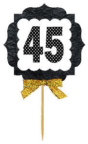 45th Birthday / Anniversary Gold Ribbon Hand Crafted Novelty Cupcake Decoration Toppers / Picks -12ct
