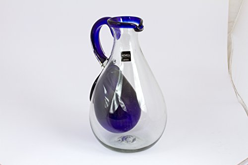 NOVICA Blue Eco-Friendly Hand Blown Glass Pitcher with Ice Chamber, 60 oz, 'Fresh Ocean'