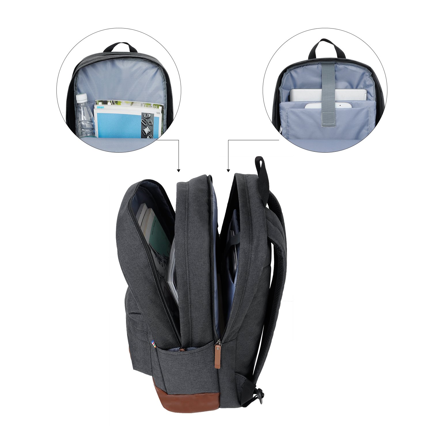 The main compartment is double zipper type, it is easy to open and close with pull hand.