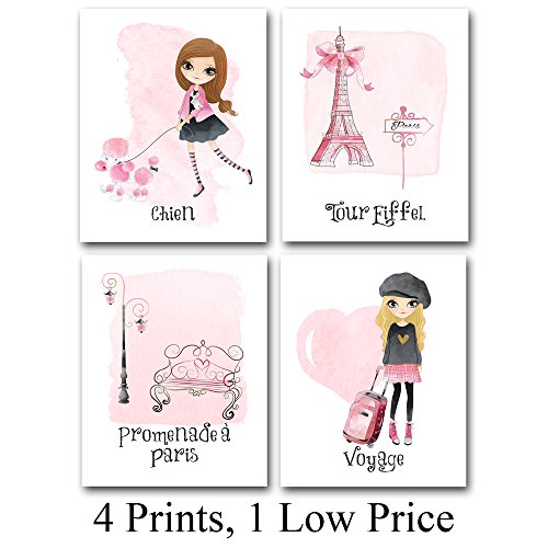 Pink Paris - Set of Four Photos (8x10) Unframed - Great Gift for Girl's Room or Nursery Decor