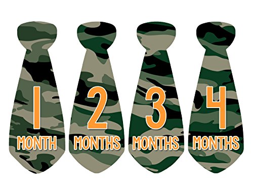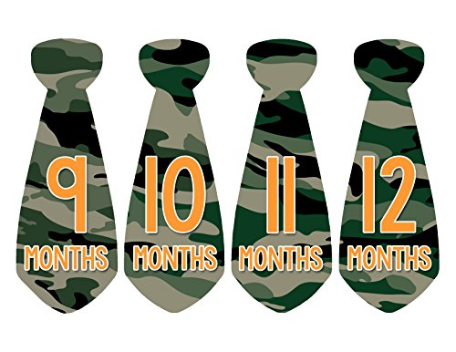 Months in Motion 766 Monthly Baby Stickers Necktie Tie Baby Boy Months 1-12 Camo Camouflage