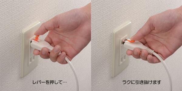 ラク抜きレバー&抜け止めロック式コンセント付きの延長コード。