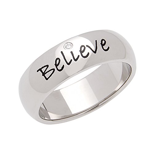 -. Title : High Polished Stainless Steel Believe with Cubic Zirconia, Christian Ring, Religious Jewelry