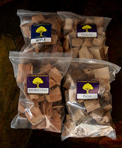 J.C.'s Smoking Wood Chunks - Premium 4 PK Gallon Sized bag of Apple, Hickory, Pecan, Wild Black Cherry