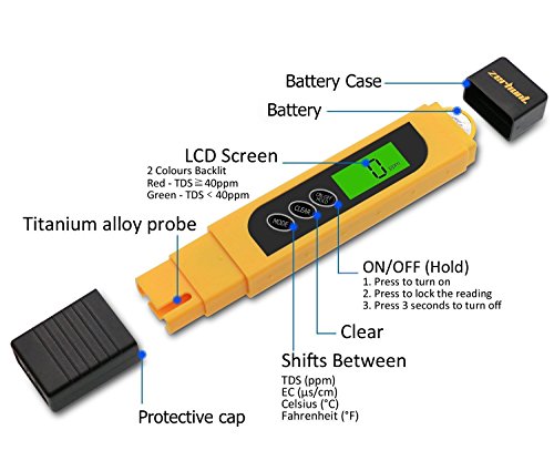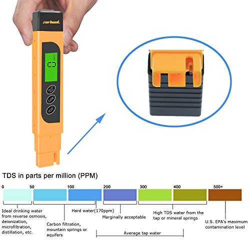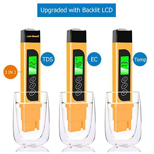 2017 Upgraded Water Tester TDS Meter,Zerhunt Professional TDS EC & Temperature Meter 3 In 1,+/- 2% High Accuracy,1 ppm Resolution,Ideal for Hydroponics,Drinking Water, Reverse Osmosis Filter,etc