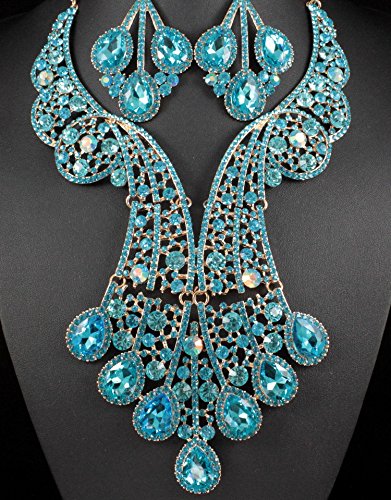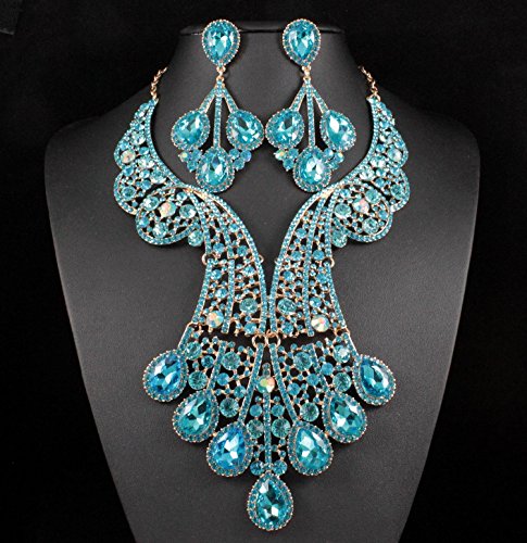 -. Binding : Jewelry -. Brand : Janefashions -. Department : womens -. Feature : You are looking at large gorgeous peacock feather necklace set. Sparkling first class Teal, AB Teal and Lighter Teal Genuine Austrian Rhinestones are set on beautiful shiny Gold Tone metal. This set shines a lot! It is perfect for any special occasions. Thanks for looking! / Size: Necklace is approx. 17 inches Long adjustable to 20 inches Long, center section drops to 5 inches, with lobster clasp. Earrings are for pierced ears, approx. 3-3/4 inches Long x 1-7/8 inches wide. / Condition: Brand New / Janefashions is a US trademark and seller Janefashions is its ONLY owner. We will pursue legal action against trademark infringement in case of UNAUTHORIZED sale or resale. -. Label : Janefashions -. Manufacturer : Janefashions -. Model : N1620 -. MPN : N1620 -. PartNumber : N1620 -. ProductGroup : Jewelry -. ProductTypeName : FASHIONOTHER -. Publisher : Janefashions -. Studio : Janefashions -. Title : Janefashions Peacock Teal Austrian Rhinestone Crystal Statement Necklace Earrings Set N820t