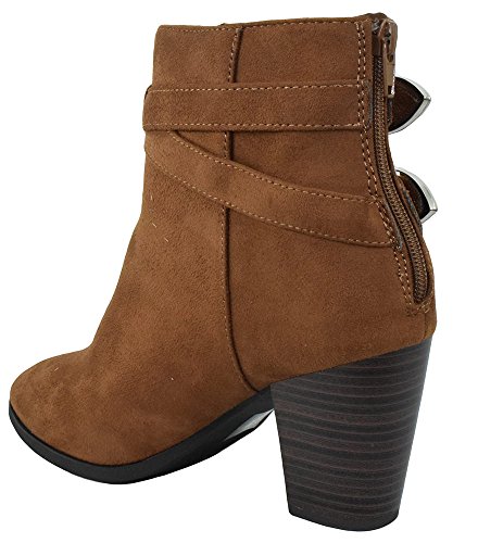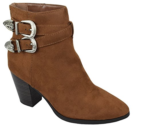 Delicious Women Ankle High Heels Boots Cowboy Buckled Strap Riding Booties Back Zipper LUNA