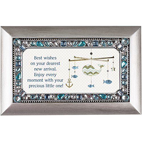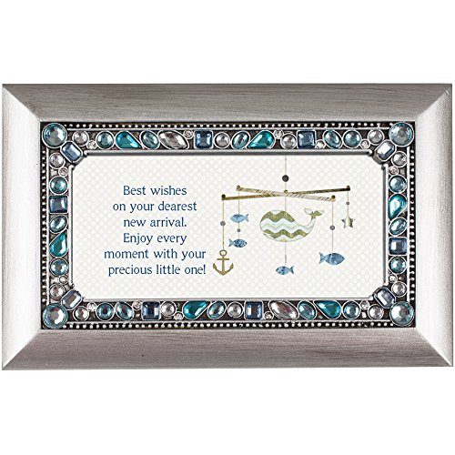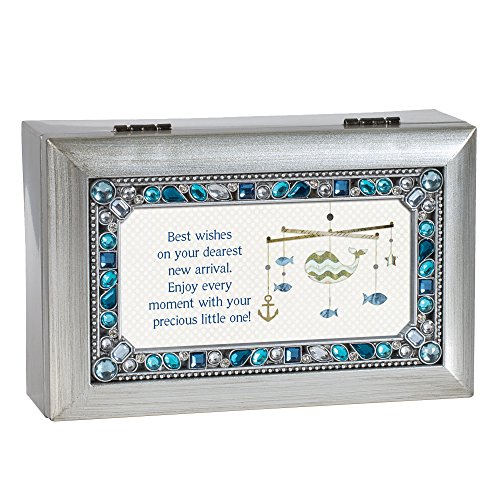 Best Wishes Precious One Boy Brushed Silver Blue Jeweled Petite Music Box Plays You are My Sunshine