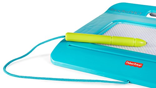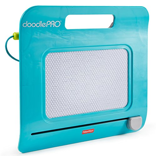 On-the-go doodling fun! The sleek & slim Doodle Pro Trip is sized just right for on-the-go, mess free, magnetic drawing fun! The screen saver pen is attached so it can't get lost, and the easy-slide eraser clears the screen so little ones can draw up new creations over & over again! The small size fits perfectly on a child's lap, making it great for car or plane travel. Plus, the durable frame includes a built in handle, so it's easy for kids to carry, wherever they go!Feature