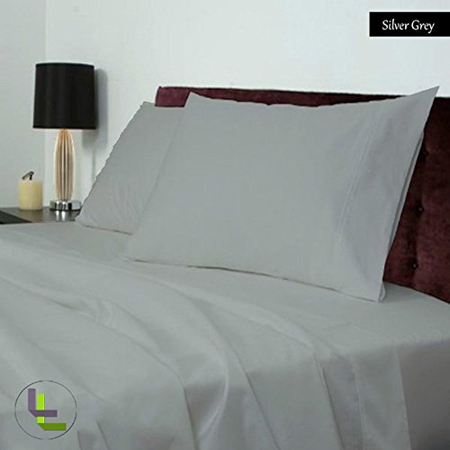Luxury Hotel Soft Cotton Sheets Silver Grey Solid 600 Thread-Count 4-Piece Twin Extra Long Bed Sheet Set Sateen Solid, Fitted Sheet Fit up to 25 Inches Deep Pocket.