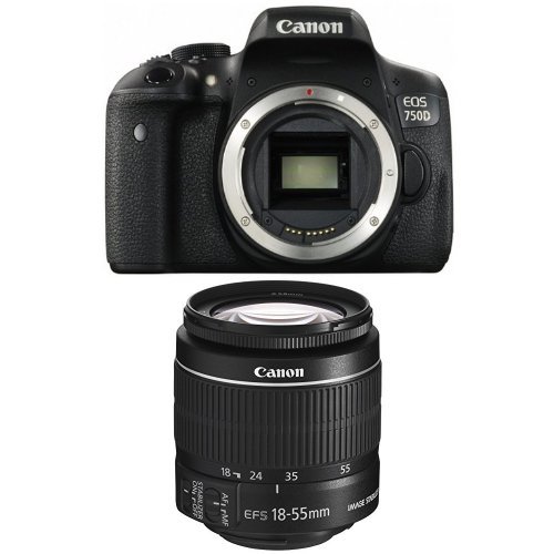 Lieferumfang:EOS 750D Gehäuse;Augenmuschel Ef;Kamera-Gehäusedeckel R-F-3;Breiter Trageriemen EW-300D;Akku LP-E17;Akkuabdeckung;Akkuladegerät LC-E17;Netzkabel für Akkuladegerät;USB-Kabel IFC-130U;Anleitungen