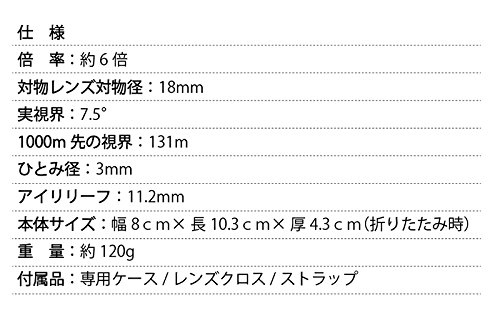 핀트 조작은 물론,시력 조정도 불요!견 대 것을 순보다!간단 캐치! ○「쌍안경 이라고 편리 이지만 핀치 합해라든지 시력 조정이라든지 어렵고, 곧바로견 대 것을 보지 않 몹시(큰 일)!」 이런 경험은 없습니까. ○분명하게 예쁘게 보기 위해서는,보통의 쌍안경에서는 필요한 작업 이군요.그렇지만 이 귀찮은 작업이 일절 필요없다,획기적인 쌍안경 「올 프리 쌍안경 do C Do-See」 ○귀찮은 핀트 조작,렌즈의 시력 조정 등 귀찮은 작업은 일절 없음!그 비밀은 예를 들면,관광지의 전망대 등에 설치되어 있는 망원경과 같은 원리.엿보는 것 뿐(만,만큼)으로 먼 곳의 산이나 가까운 건물이 분명하게 보인다,do C 상자의 광학 원리를 이용한 본격적 쌍안경입니다. ○배율도 프로 도 추천 하고 있는 6배율.배율이 클 정도로(수록) 좋다고 생각해서는 없습니까.배율이 10배 이상은 취급이 어렵게 손 흔들이 크게 됩니다.처음하시는 분에게는 6배가 보기 편리해 최적입니다. ○크기서는 본격적 인데 가벼워 가슴의 포켓으로도 들어 간 콤팩트크기.《스마호》와 거의 같은 위의 무게. ○하이킹이나 산보행,버드워칭,스포츠 관전,천체 관측,아드님의 운동회나 동물원,연극 구경이나 콘서트,낚시로도 편리.평소의 산책도 레져로 일변하는데요!