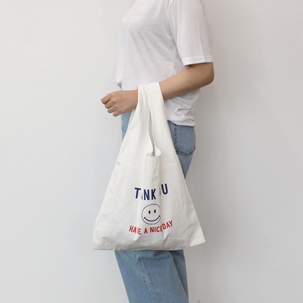 |  귀엽고 심플한 디자인의 스마일 땡큐 에코백 귀여운 스마일과 레터링 프린팅으로 포인트를 더해준 에코백 소개해드려요. 얇은 면 소재를 사용하여 가볍고 부드러워 사용감 또한 편안한 에코백이에요. 사이드에 달린 스트랩을 팔에 살짝 걸쳤을 때에 내추럴하게 떨어지는 쉐입이 예뻐요. 캐주얼하게 어디에든 다양한 데일리룩에 매치할 수 있는 에코백이랍니다 가방 양쪽 끝에서 바로 시작되는 굵은 손잡이! 들었을 때 참 귀엽게 연출이 가능하더라구요 자세한 내용은 스마일 땡큐 에코백 상세페이지 확인 후 굿초이스 해주세요! *모델 착용 컬러 - IVORY(아이보리)       | COLOR | 아이보리 | | 제품 색상은 모니터에 따라 실제 색상과 차이가 있을 수 있습니다. | | | | FABRIC | 면 | | | | PRODUCTION | 제조국 / 중국 | | 품질보증기준 / 소비자분쟁 해결기준에 따름 | | A/S 책임자 및 고객센터 / 감성가방 | | | | SIZE INFO | 사이즈는 측정 방법에 따라 1~2cm의 차이가 있을 수 있습니다. | | 스트랩 길이는 연결 고리를 제외한 길이이며, 최대 길이입니다. | | (단위:cm, g) | | 가로 길이 | 세로 길이 | 너비 | 손잡이 높이 | 스트랩 길이 | 무게 | | 36 | 35.5 | - | 20 | - | 100 | |