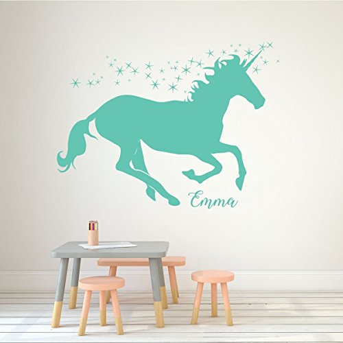 -. Title : Unicorn Wall Decor Vinyl Decal Personalized For Girl's Bedroom, Playroom or Bathroom - Kids Home Decorations