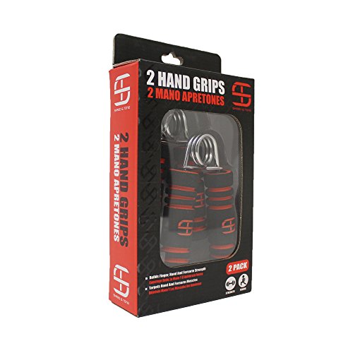 Studio : Shred Tone Publisher : Shred Tone Binding : Sports Product Description Hand Grips are essential for building endurance, dexterity, forearm muscularity and hand strength. People who play tennis, musical instruments, perform gymnastics, travel with heavy luggage/suitcases, weightlifters, and even use stress balls, understand how the right hand grip helps them improve all these areas of activity. The Shred Tone hand grips are superior because our super foam handles help provide a better grip and more reps. Made with steel material to increase the product lifetime and maintain efficiency. 0