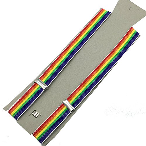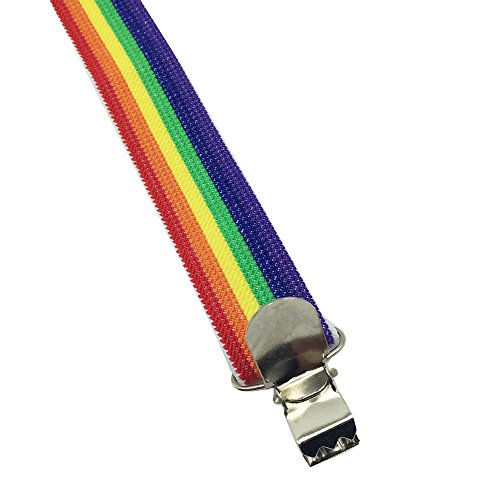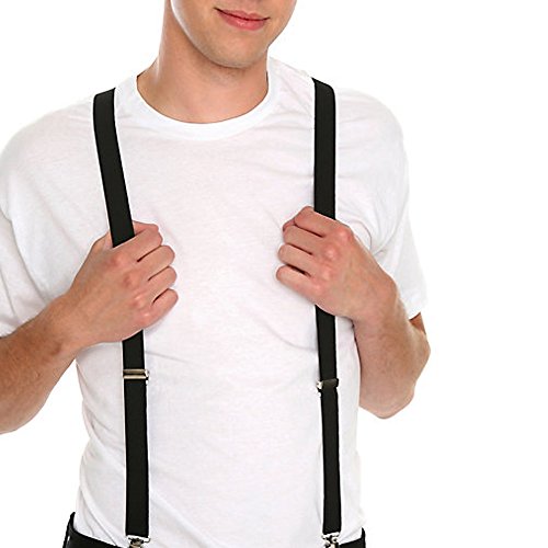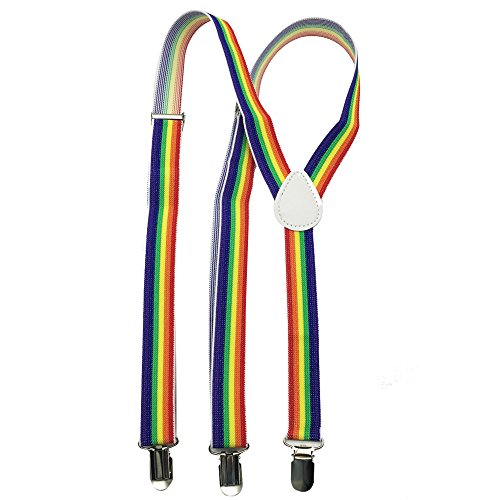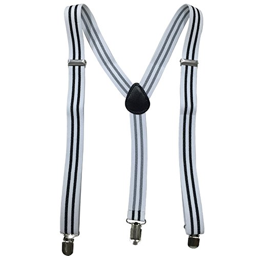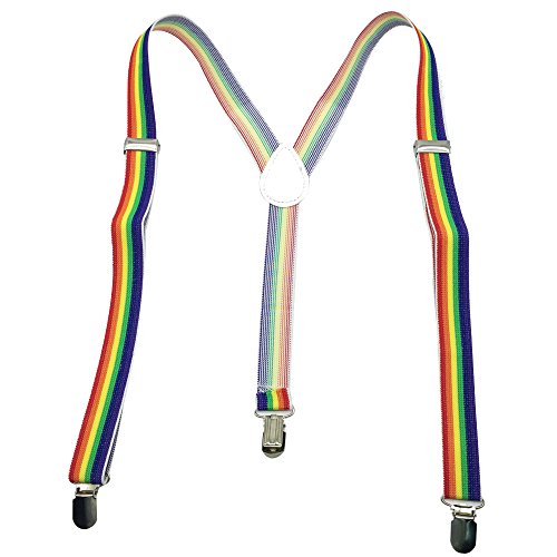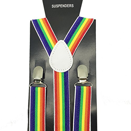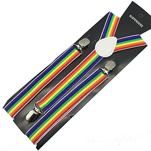 | AINOW Mens Womens Skinny Solid Color Y-Back Adjustable Elastic Suspenders Pure Color Striped Sh... |