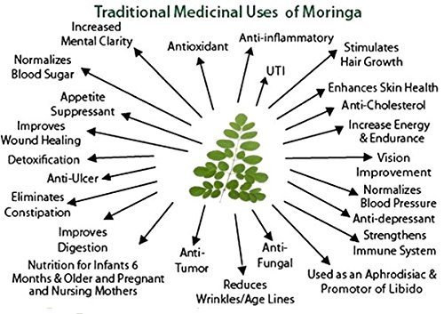 The Healing Powers of Moringa In addition to its nutritional benefits, Maringo leaves have been used in traditional medicine for centuries for a variety of health issues. It's use in Ancient Greek, Egyptian, and Chinese Medicine is well documented. Mother Nature's Multi Vitamin Known by the World's Scientists and Herbalists as the most nutritious plant ever discovered, Morgina Oleifera is the KING OF ALL SUPERFOODS. Moringa is the purest most potent source of antioxidans and life-restoring nutrients on Earth. SUPERCHARGE YOUR LIFE with the over 92 different vitamins, nutrients, amino acids, antioxidents found in Maranga Oleifera leaves. 0