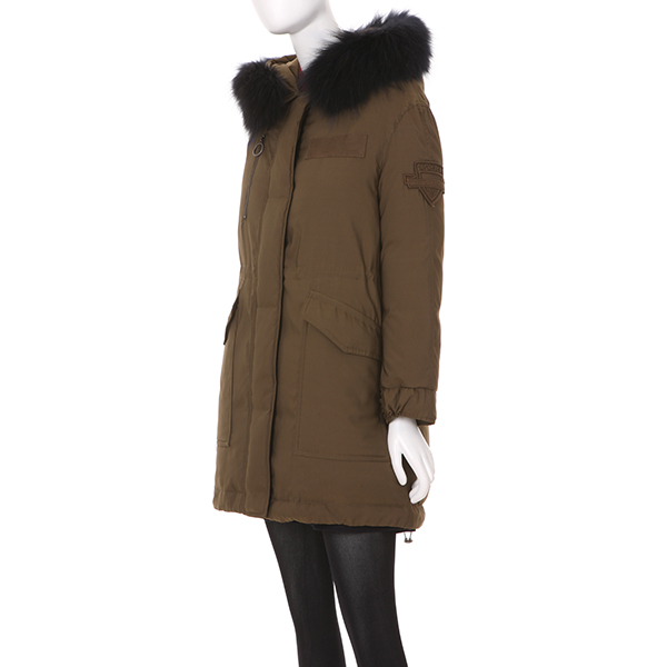 겉 감- 폴리에스터 83% 나일론 17% 배 색- 천연모피(락쿤) 100% 충전재1-오리솜털 70% 깃털 30% 충전재2-폴리에스터 100% 안 감-폴리에스터 100%