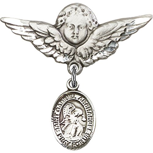 -. Title : Sterling Silver Baby Badge with St. Gabriel the Archangel Charm and Angel w/Wings Badge Pin 1 1/8 X 1 1/8 inches
