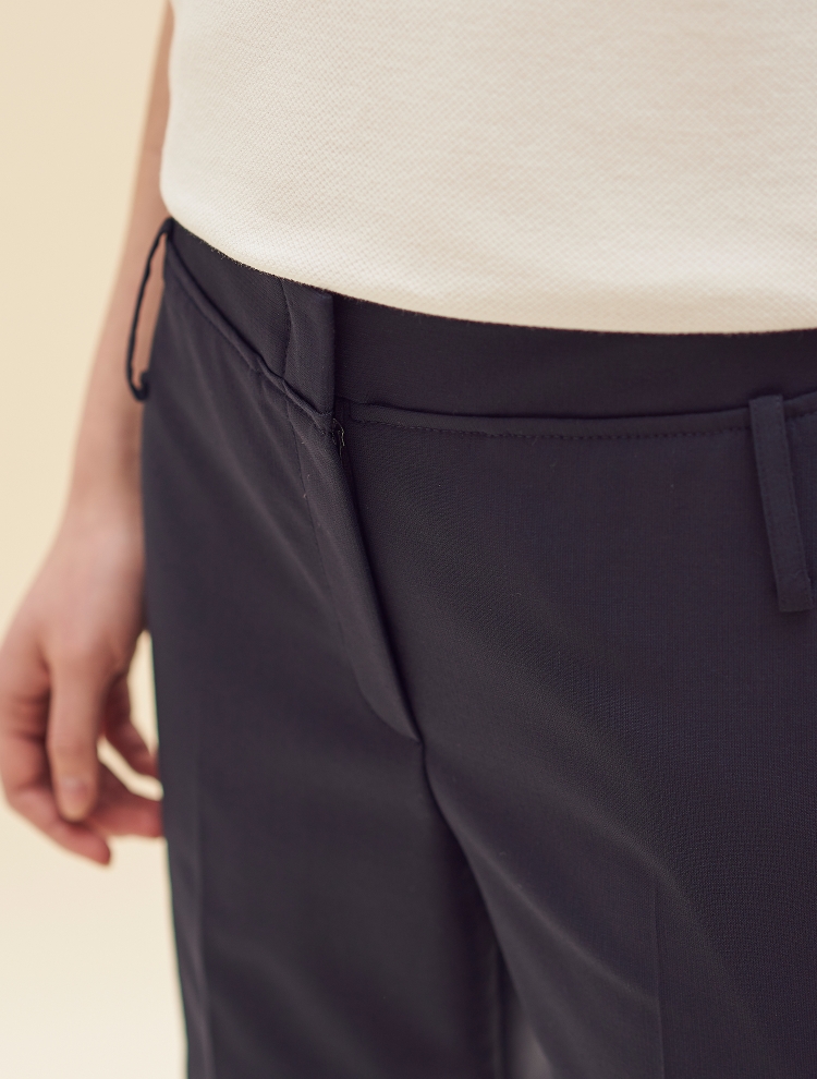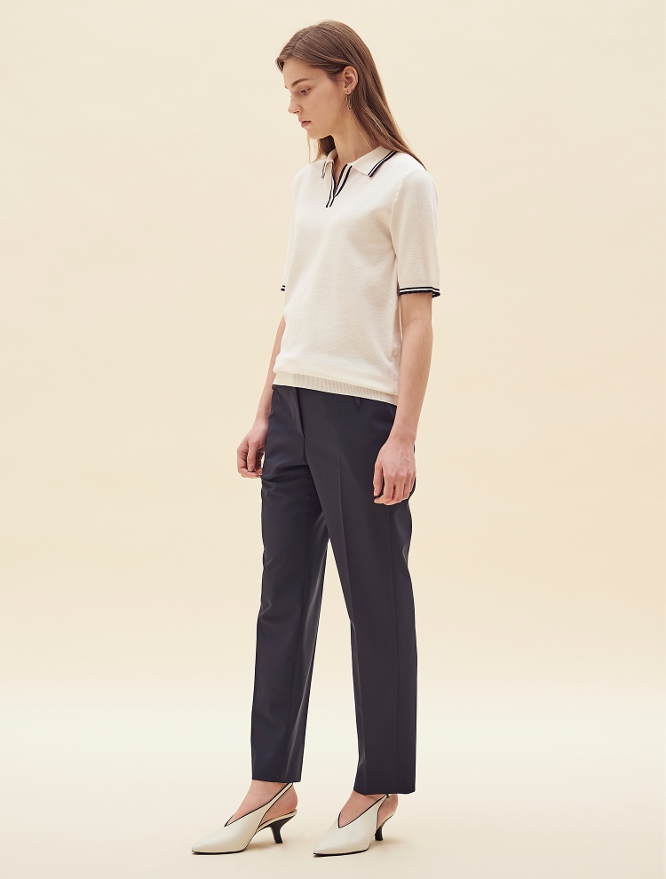 - 청량감있는 터치의 이태리 수입 소재를 사용한 일자핏의 팬츠로 블라우스나 셔츠와 함께 코디하여 차분한 느낌으로 연출 가능한 제품입니다.