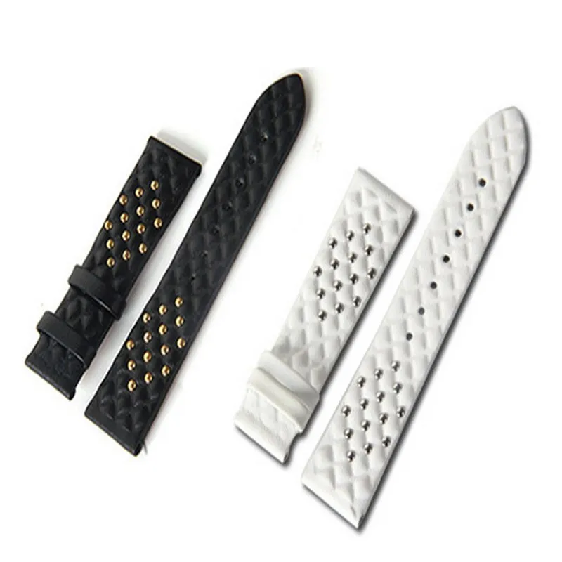 | [해외] 새로운 높은 품질 정품 가죽 손목 시계 리벳 매트 가죽 시계 스트랩 측면 버클 19 미리메터 시계 액세서리 |
