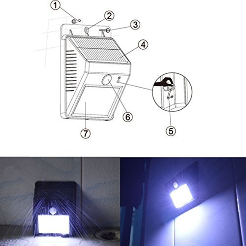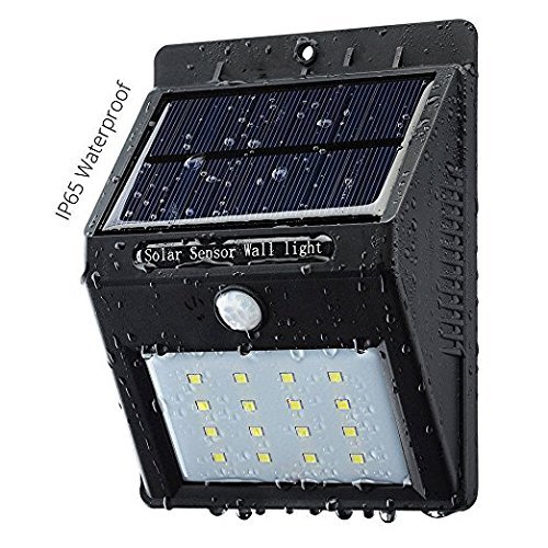 - 【SUPER BRIGHTER & EFFICIENT】16 LED Lights outdoor waterproof wireless solar powered motion sensor wall brighter light. No wiring necessary,solar energy powered. It using for Canadian Solar Inc monocrystalline silicon solar panel power then have improvement 20% solar photovoltaic conversion efficiency than similar products, then the wall light is super bright than other LED solar motion sensor garden light and much longer useful life.