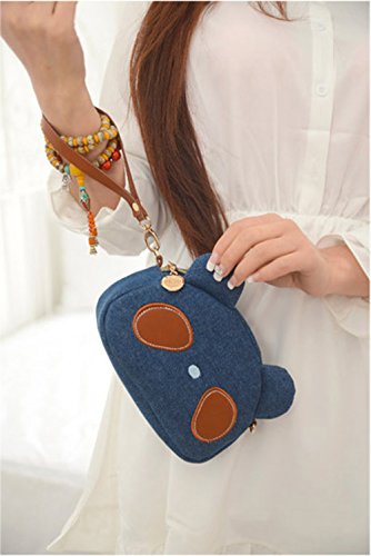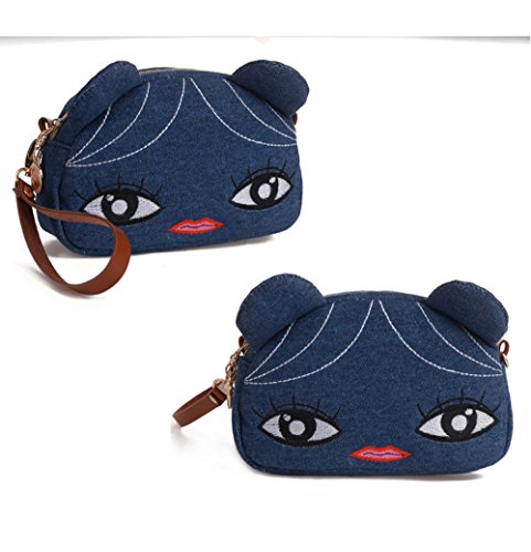 - Material: Denim, Polyester lining, Structure: 1 main zip compartment , 1 inner pocket, 1 removable wrist strap, 1 removable and adjustable cross body strap.