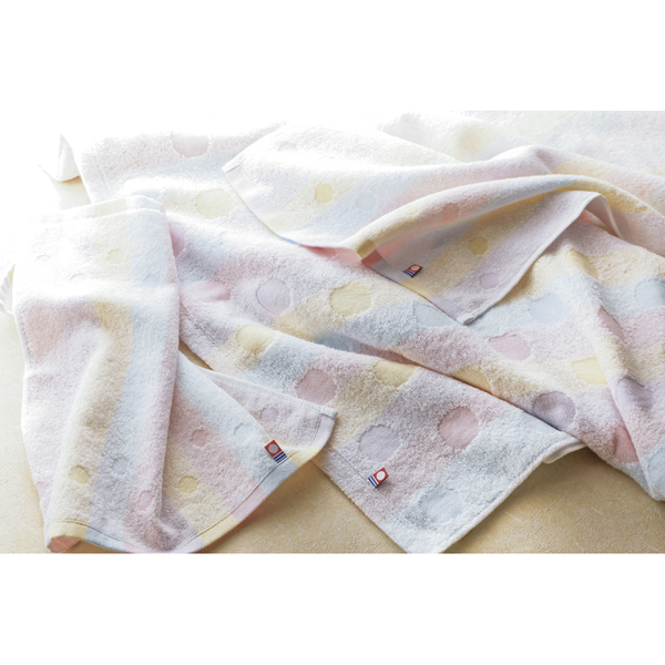 ●ふんわりやわらか、わたのように織り上げた虹色のタオルセットです。