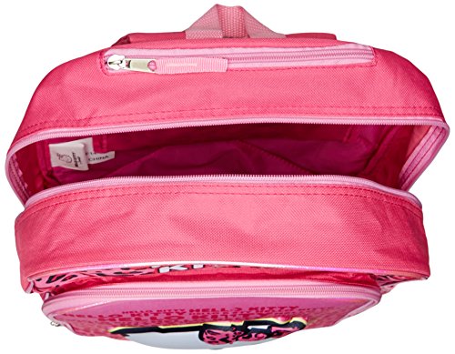 Multi-compartment backpack featuring adjustable padded shoulder straps and 3D Hello Kitty graphic at front