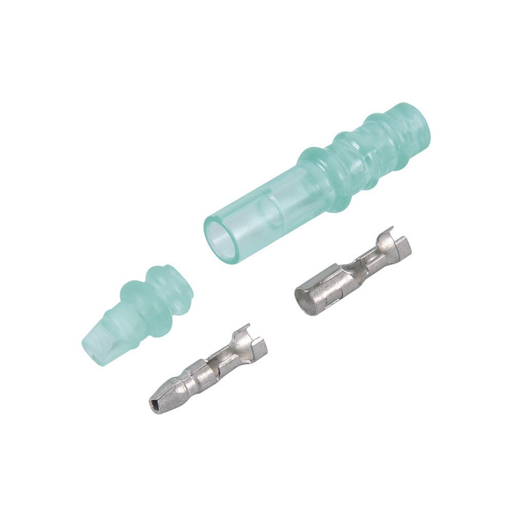 I think that this waterproof Kiboshi is from Yazaki, but it is painful to say that you can easily buy, so it is very appreciated that you gave me a piece from Aemon. It is wonderful to say that you can buy a small amount at once when you want to buy, as it is not said that individuals always use large quantities. It seems to be the engine room of a car, but when wiring to a motorcycle it is necessary to pay attention to waterproofing in particular. Even if I used the Kiboshi terminal up to now, since I was coiling around with insulation tape / vinyl tape for waterproofing eventually, I would use something that would caulk together the connection cords where I would not remove much It was. Although it becomes much high compared with ordinary Kiboshi, since the metal fittings themselves are the same as non waterproofing, it is economical as only waterproof sleeves can be reused even if they fail. Because of the nature of waterproofing, the part that passes the code is quite thin, so it is up to the code of the thickness of 0.85 sq, but I think whether there is no problem in the normal place. Although it is the waterproof performance of the essence, I tried putting water on the car washing when connecting, but it does not leak. It is excellent. I was worried about deformation due to heat because the motorcycle was often wired to the side of the engine or radiator so much, but I tried riding around the radiator in a state of "touching" and then watching it while watching it, No deformation occurred. It is very solid, that point is also wonderful. Of course it is necessary to avoid the actual maneuvering from the heat source as much as possible and it is necessary to periodically check that the waterproof will definitely deteriorate, but it goes without saying that durability is high even if it is exposed to heat by any chance, It is very good waterproof Kiboshi. It is a star-1 because it is a little expensive because it is this price in four sets, but it is very good to buy immediately when you want to buy it easily.