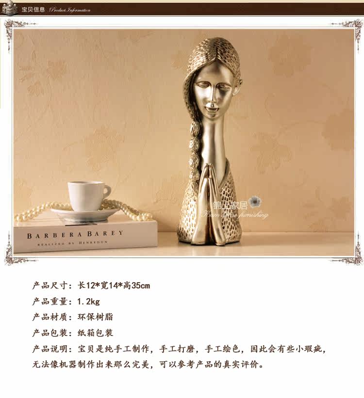 欧式祈福少女雕塑摆件 时尚创意家居饰品摆设结婚生日礼品工艺品
