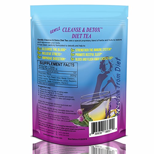 -. Binding : Health and Beauty -. Brand : YoungYou International -. Label : YoungYou International -. Manufacturer : YoungYou International -. ProductGroup : Health and Beauty -. ProductTypeName : HEALTH_PERSONAL_CARE -. Publisher : YoungYou International -. Studio : YoungYou International -. Title : Slim for Life Diet Tea for Weight Loss, Body Cleansing, Detoxifying, Bloating and Gluten Cravings Reducing. Safe and Gentle. Delicious Tasting - Exclusive Time Proven Formula. ...