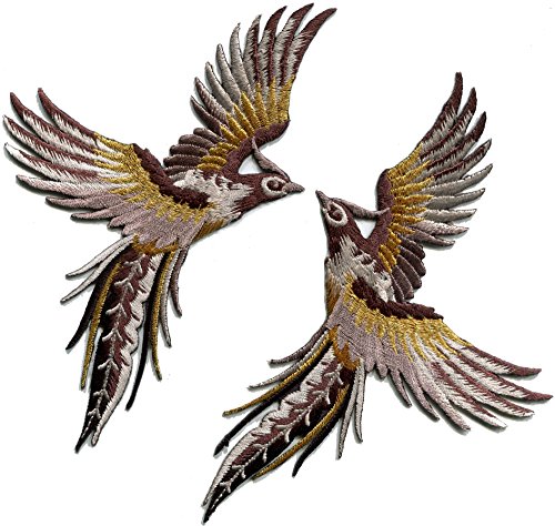 Phoenix phenix birds cedar brown black gold embroidered appliques iron-on patches pair S-1339