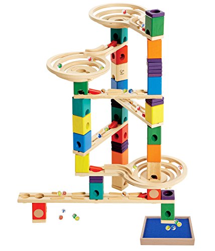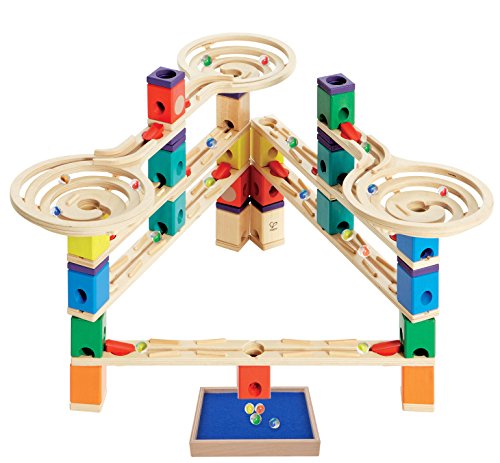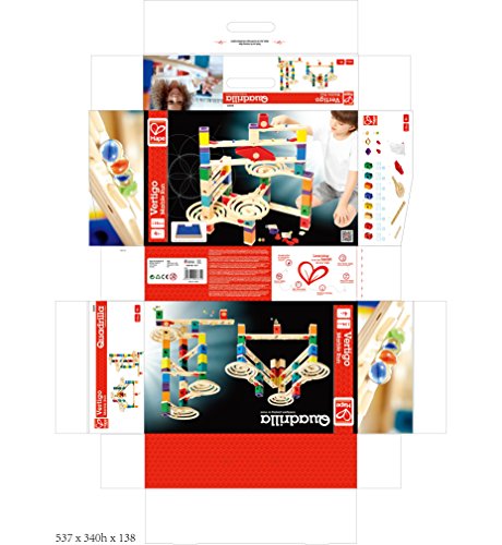 Studio : Hape Publisher : Hape Binding : Toy Product Description The popular Hape Quadrilla Vertigo Wooden Marble Run now with BONUS Hape Quadrilla Wooden Marble Run Catcher Tray (one) Add-on for extra fun! Quadrilla's Vertigo marble run is a mix of spins, drops, seesaws, and speed that will confuse little marbles as to which way is up. The Vertigo marble run set comes with straightaway rails, three spiral funnels, and a seesaw for swift, stimulating fun. Quadrilla's Vertigo can be combined seamlessly with Quadrilla's other marble run sets. All Quadrilla marble run sets are crafted with high quality birch and rubber wood for long-lasting marble racing fun! For ages four years and up. 0
