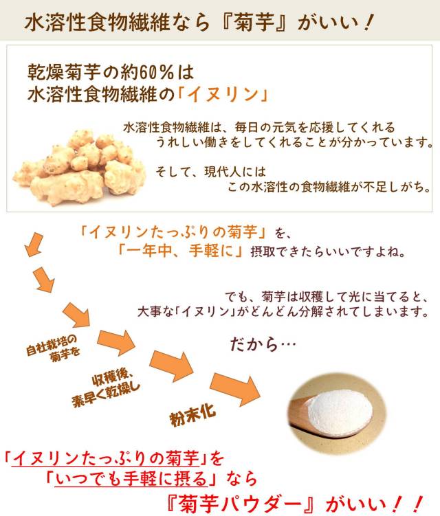 食物繊維の中でも、特に不足しがちな「水溶性食物繊維」(イヌリン)がいっぱい。
