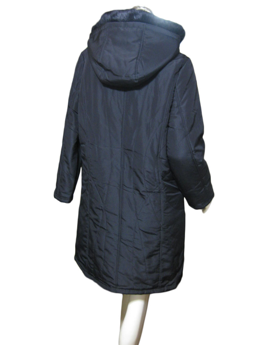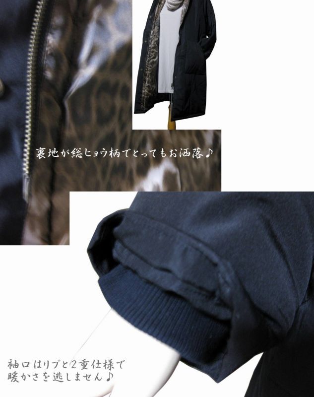 | ラビットファーフード付き裏総ヒョウ柄中綿ロングコート | |