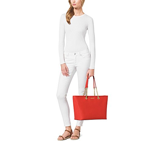 -. Title : MICHAEL Jet Set Travel Medium Saffiano Leather Tote - Bisque