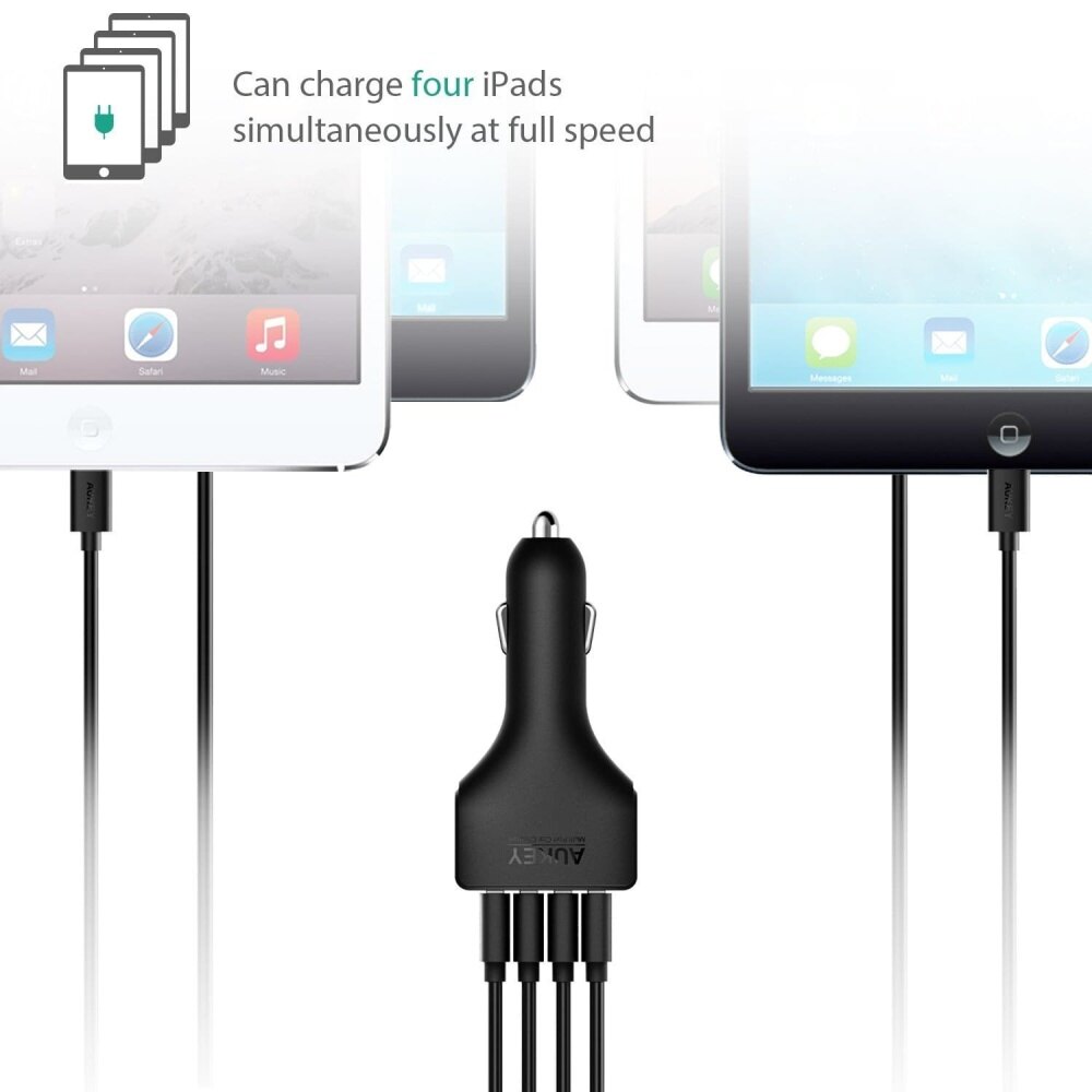 With 48W 9.6A output, the Aukey's car charger can simultaneously charge four tablets or four smart phones at full speed (up to 2.4A). It is easy to use and compatible with both Apple, Android devices and most other USB charging devices.