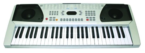 Studio : M M Merchandisers, Inc. Publisher : M M Merchandisers, Inc. Binding : Electronics Product Description 54 Key Electronic Keyboard. LED Display. 10 Tones Rhythms. 8 Demo Songs. Record Play. Guide A B. 8 Panel Drums. Sustain Function. Vibrato Function. Sync Fill Function. Single Finger. Chord. Includes AC Power Adapter. Can also be powered with six D-Cell batteries. RCA Outputs. 3.5mm Headphone Jack. 3.5mm microphone Jack. Weight: 8 Lbs. Dimensions: 32.88"W x 13"D x 3.75"H (10.25"H with supplied music holder) 0