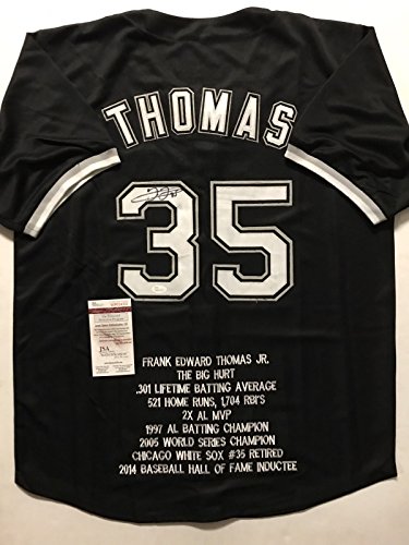 Autographed/Signed Frank Thomas Chicago White Sox Black Stat Baseball Jersey JSA COA