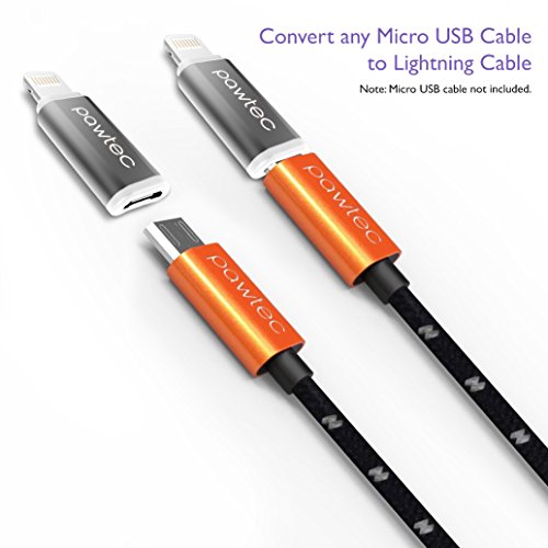 [Apple MFi Certified] Pawtec Micro USB to 8-Pin Charge and Sync Adapter - Charge your iPhone / iPad / iPod with Micro USB Cables - Works With all iOS Updates (Gray)