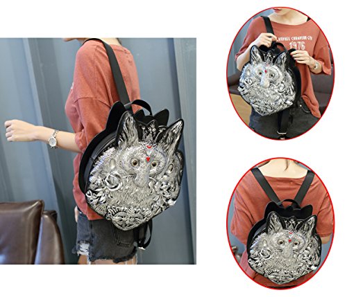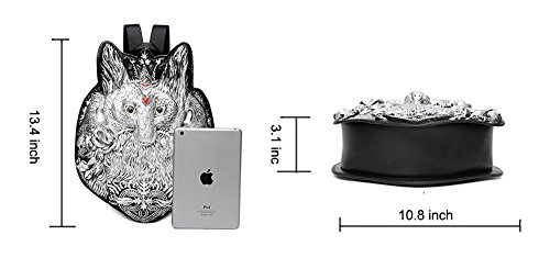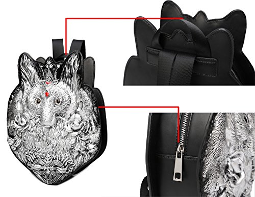 -. Feature : Material: durable PU leather + high quality nylon lining / Vivid embossed fox shape with roses in mouth, unique and cute / Top zipper closure and adjustable shoulder straps, convenient for everyday use. / Main compartment and 1 inner zipper pocket and 2 slip pockets for most your necessities / Size: 10.8"L x 3.1"W x 13.4"H ; iPad mini fitting, easy to carry umbrella, mobile phone, wallet, makeups, etc..