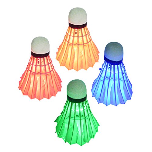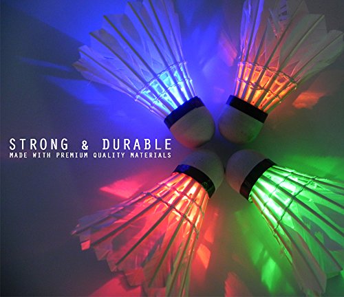 My Badminton Shuttle Cock | Set of 4 Colorful LED Lights Captivating Colorful LED Lights / Glowing Birdies for Enjoyable Night-Time Badminton, Premium Delicate Goose Feather