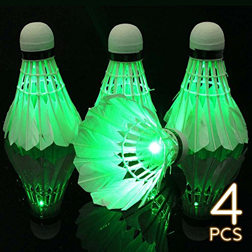 My Badminton Shuttlecock Green | 4 Pcs Green LED Badminton Shuttlecock Glow in the Dark Night Birdies Lighting for Indoor and Outdoor Sport Activities | 473.2