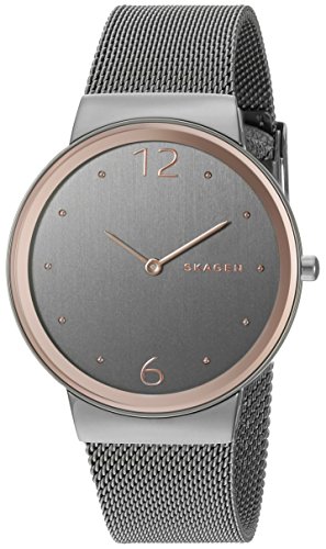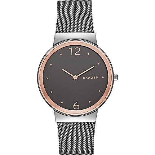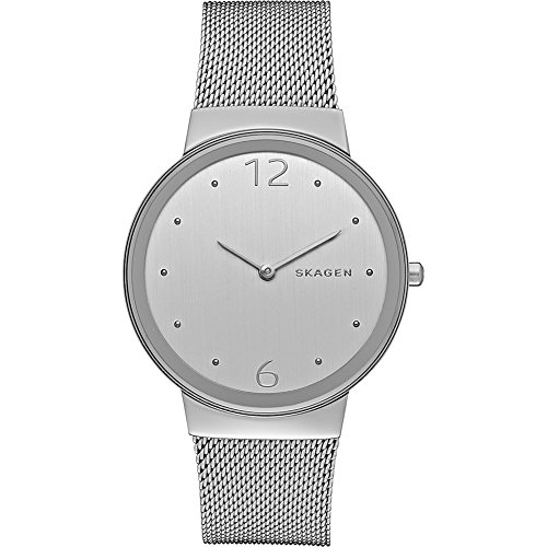 Studio : Skagen Publisher : Skagen Product Description Our Freja is understated and elegant. The clean design of the case features numbers at 12 and 6, with metallic dots to note the remaining hours. The polished case connects to a stainless steel mesh band. 0
