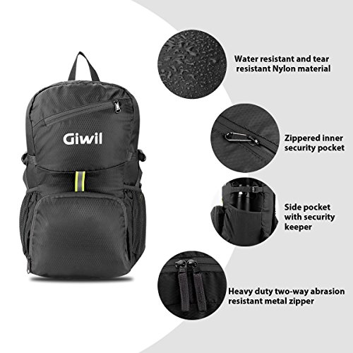 -. Binding : Misc. -. Brand : Giwil -. Feature : A FAITHFUL TRAVEL ORGANIZER: This backpack features one main zipped compartment, a big front pocket and two side pockets. The main compartment provide enough room (20 liters) no matter if it's a day trip or a week long journey. The main compartment is convenient enough to help you further organize things. The big front pocket is good for holding small accessories and for easy access. Two side pockets are good for holding water bottles and umbrellas. / COMFORTABLE: Breathable mesh shoulder straps with plentiful sponge padding help relieve the stress from your shoulder. The length of the shoulder straps is adjustable. The chest strap with a whistle buckle help you lock your backpack in place securely. / DURABLE: This Giwil Backpack is made with high quality tear and water resistant material, provides extra strength and long-lasting performance with the lightest weight possible. The extra strength provided by the bottom piece makes it very convenient to carry more load on your journeys. Heavy duty metal zipper across the backpack is convenient to operation on whichever side you prefer. Longevity is further enhanced by bar-tacks at major stress points. / LIGHTWEIGHT and ROOMY: A true space saver. Fold the backpack into its own pocket for storage(no more excess baggage fees), and unfold it when you reach your destination. To avoid overweight charge, simply unfold from your checked bags and use it as a carry on for your excess baggage. / COMPACT: This handy backpack is only small till you open it. Foldable and portable, you can fold it up into a sandwich size small pocket and toss it in your handbagFolds into zipped inner pocket to fit anywhere, and unfolds from pocket to backpack in seconds. A must have for every trip. If For Whatever Reason You Don't Absolutely Love Your Backpack, Just Return It And We Will Refund Every Penny Or Replace It FREE OF CHARGE, No Questions Asked. -. IsAutographed : 0 -. IsMemorabilia : 0 -. Label : Shenzhen Simai Wulian Technology Co., LTD -. Manufacturer : Shenzhen Simai Wulian Technology Co., LTD -. ProductGroup : Sports -. ProductTypeName : SPORTING_GOODS -. Publisher : Shenzhen Simai Wulian Technology Co., LTD -. Studio : Shenzhen Simai Wulian Technology Co., LTD -. Title : Lightweight Packable Durable Travel Hiking Backpack Daypack, Giwil 20L/30L Foldable Camping Backpack for Men Women and Teens