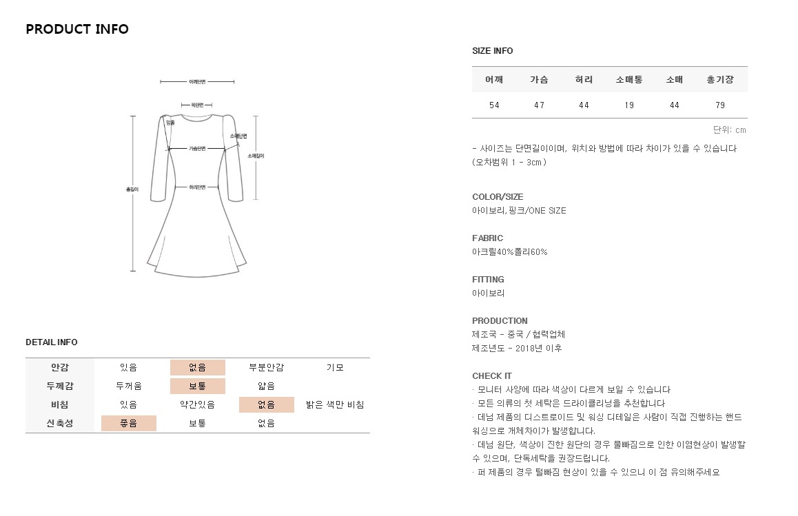 *모든 의류의 첫세탁은 드라이크리닝을 권장해드립니다*